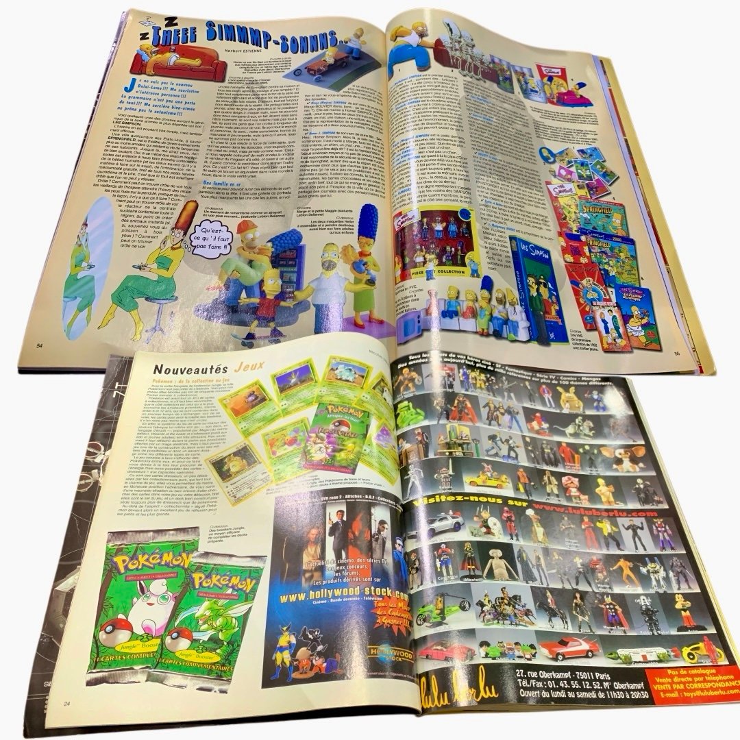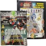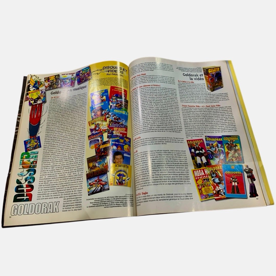 The magazine cover highlights Grendizer (Goldorak) as a “phenomenon of a generation” and features articles on Star Wars X-Wings, The Simpsons, and Mego dolls.