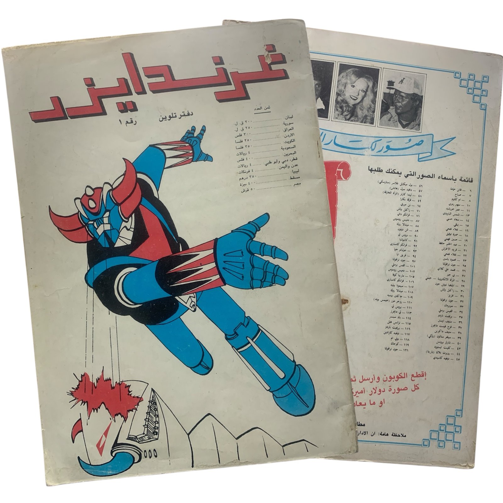 It is a rare collectible item related to the popular Japanese anime series “UFO Robot Grendizer” (also known as Goldrake or Goldorak), which gained significant popularity in the Arab world.