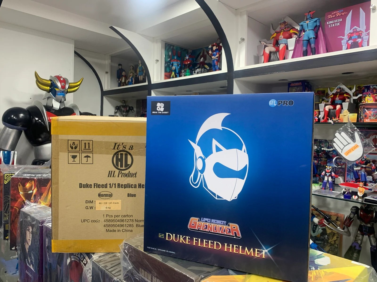PU (hei-cast Polyurethane) material replica helmet of duke fleed from the anime UFO ROBOT GRENDIZER. Includes; X1 1:1 PU Helmet (approximately fit a circumference of 55cm) X1 fitting pad set , readjustable type.