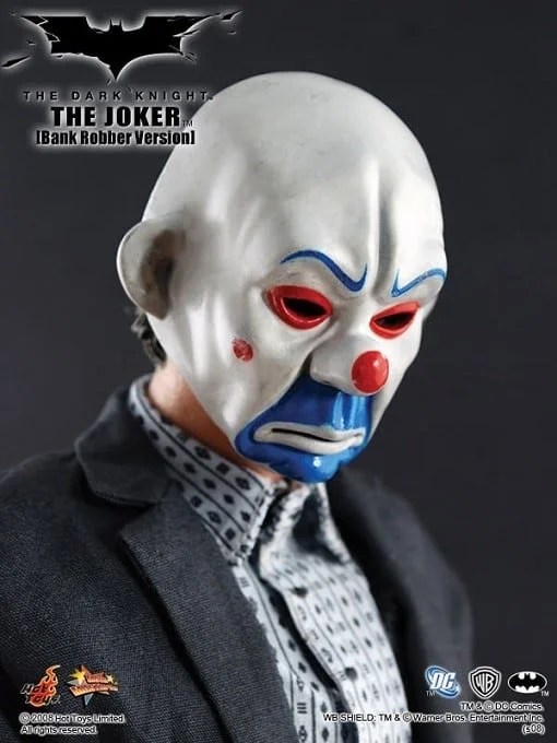 The movie-accurate collectible figure is specially crafted based on Heath Ledger’s image as The Joker in his bank robber outfit in the movie. It features a newly painted head sculpt with upgraded technique, a newly sculpted interchangeable Bozo masked head sculpt with scuff marks, brand new tailored slimmer-fitting costume, detailed weapons, accessories, and a backdrop of the school bus used in Gotham National Bank heist.