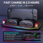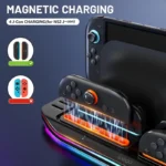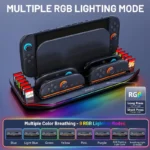 iPega NS2 Charging Dock with 12 Game Card Storage, 9 RGB Light Modes, Magnetic Control Charger Station