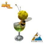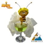 Maya the Bee taking a bath in a glass.