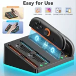 charger for switch 2 game controller charges four controllers simultaneously cartridge storage multi mode rgb lighting charging indicator light flat docking station for ns switch 2 controllers Product details 5