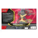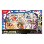 The Pokémon TCG: Mega Lucario ex Figure Collection Includes 1 etched foil promo card featuring Mega Lucario ex, 1 oversize promo card featuring Mega Lucario ex, 1 figure featuring Mega Lucario, 5 Pokémon TCG booster packs and a code card for Pokémon TCG Live
