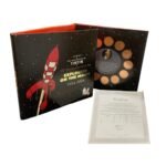 It features one silver proof token coin depicting Tintin’s moon adventure.